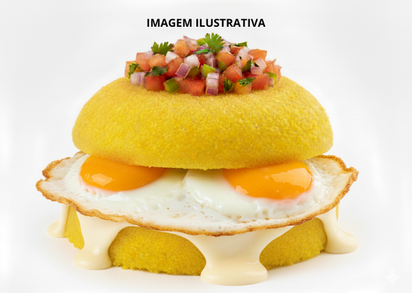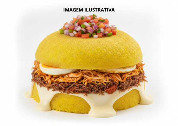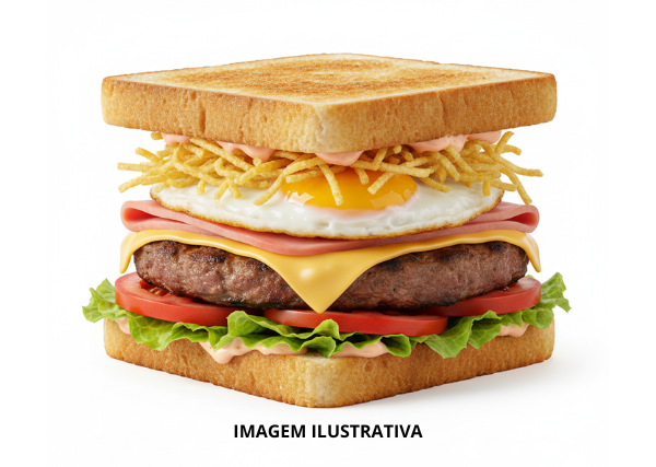 Pão de Caixa, Carne, Salada, Queijo, Presunto, Ovos, Batata-Palha e Molho