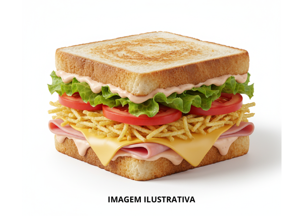 Pão de Caixa, Salada, Queijo, Presunto, Batata-Palha e Molho
