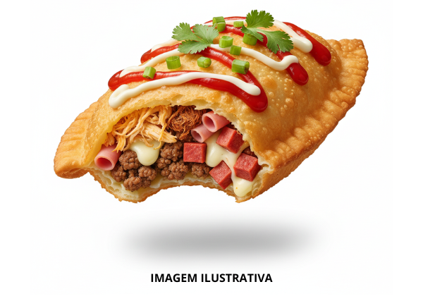 Massa de Pastel, Carne Moída, Frango Desfiado, Queijo, Presunto, Carne de Sol, Calabresa, Verdura e Molho