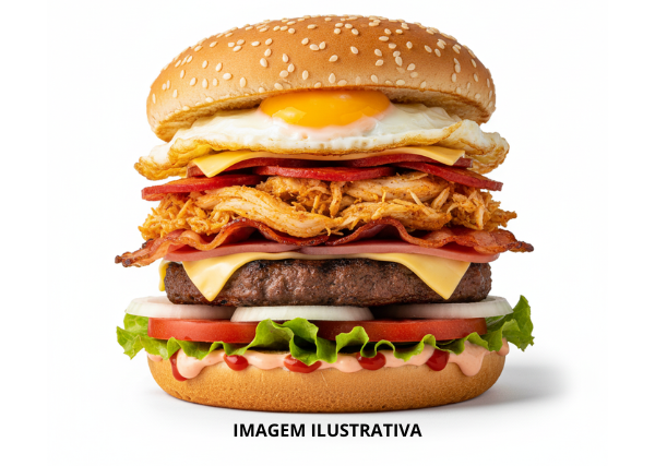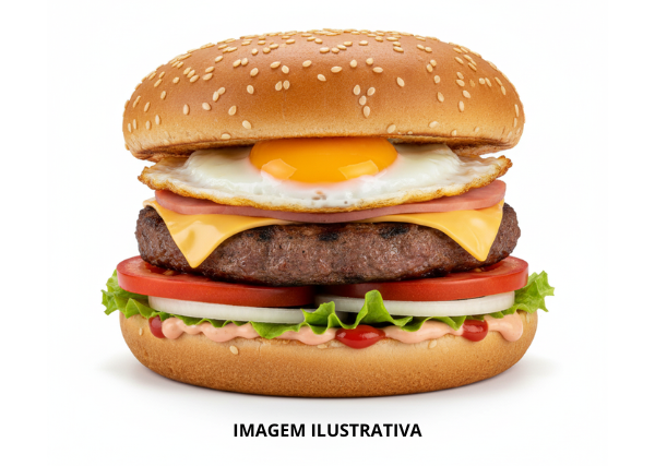 Pão de Gergelim, Carne, Salada, Queijo, Presunto, Ovos e Molho