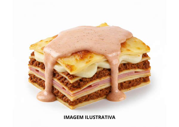 Massa de Lasanha, Molho Rosé, Carne Moída, Queijo e Presunto